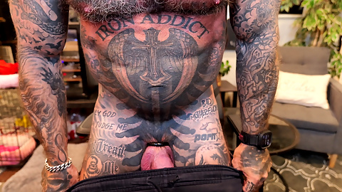 Hardsteele97 fucking himself with his huge black dildo. Daddy bear loves to shoot a massive load on his chest and mouth..
