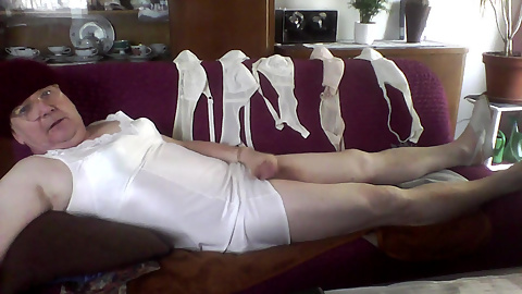 Andi Geil as a crossdresser while jerking off