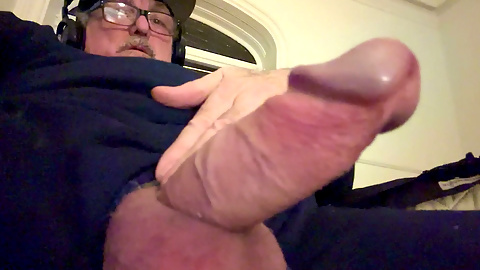 Stroking my cock and getting ready to cum